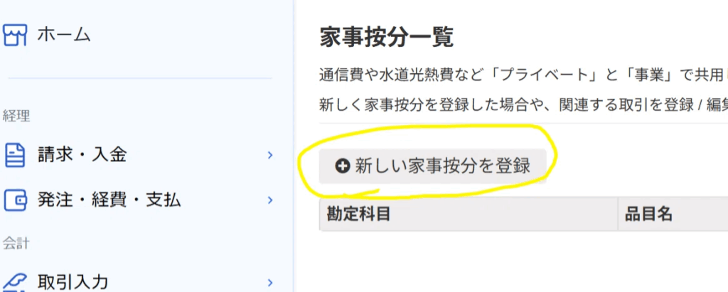 - 「新しい家事按分」 を追加